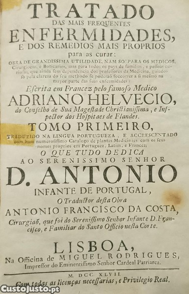 Tomo primeiro, traduzido na lingua Portuguesa por António Francisco da Costa "Cirurgião"