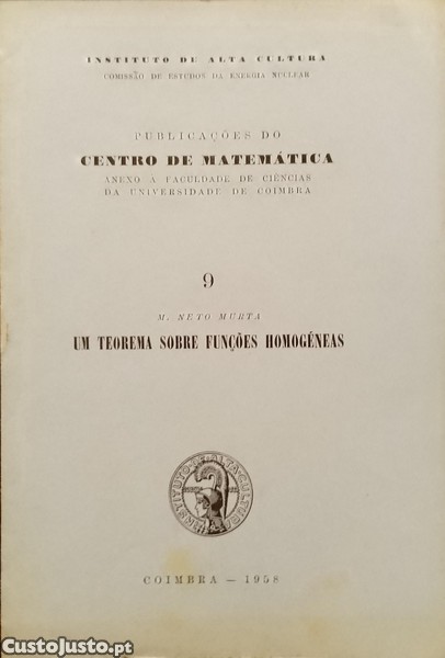 Preço: 6 €Um Teorema sobre Funções Homogéneas - M. Neto Murta
