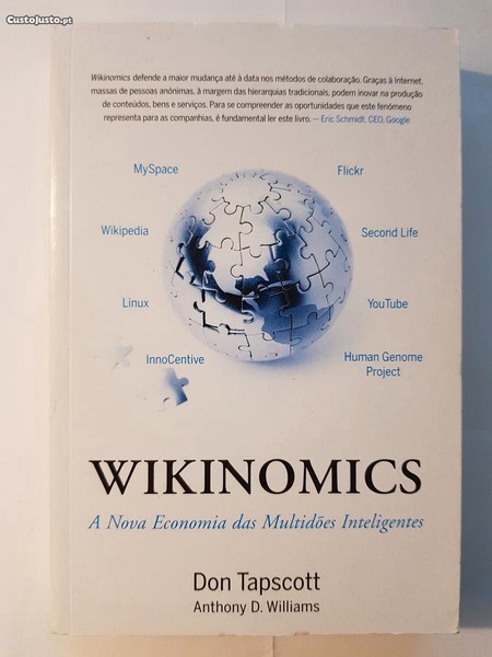 Wikinomics defende a maior mudança até à data nos métodos de colaboração. Graças à Internet, massas de pessoas anónimas, à margem das hierarquias tradicionais, podem inovar na produção de conteúdos, bens e serviços. Para se compreender as oportunidades que este fenómeno representa para as companhias, é fundamental ler este livro. Eric Schmidt, CEO, Google