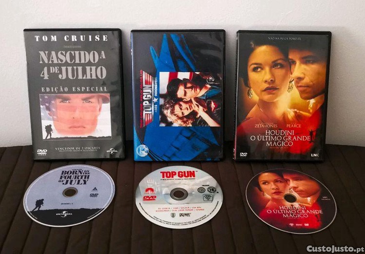 Preço: 10 €3 filmes Top-Gun/Nascido 4 Julho /Houdini