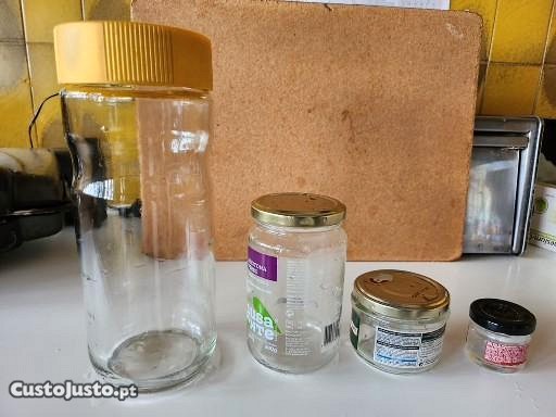 Frascos de vários tamanhos para mel ou compotas. Cerca de 50 no total, a 50 cent. cada ou 20 EUR por todos.