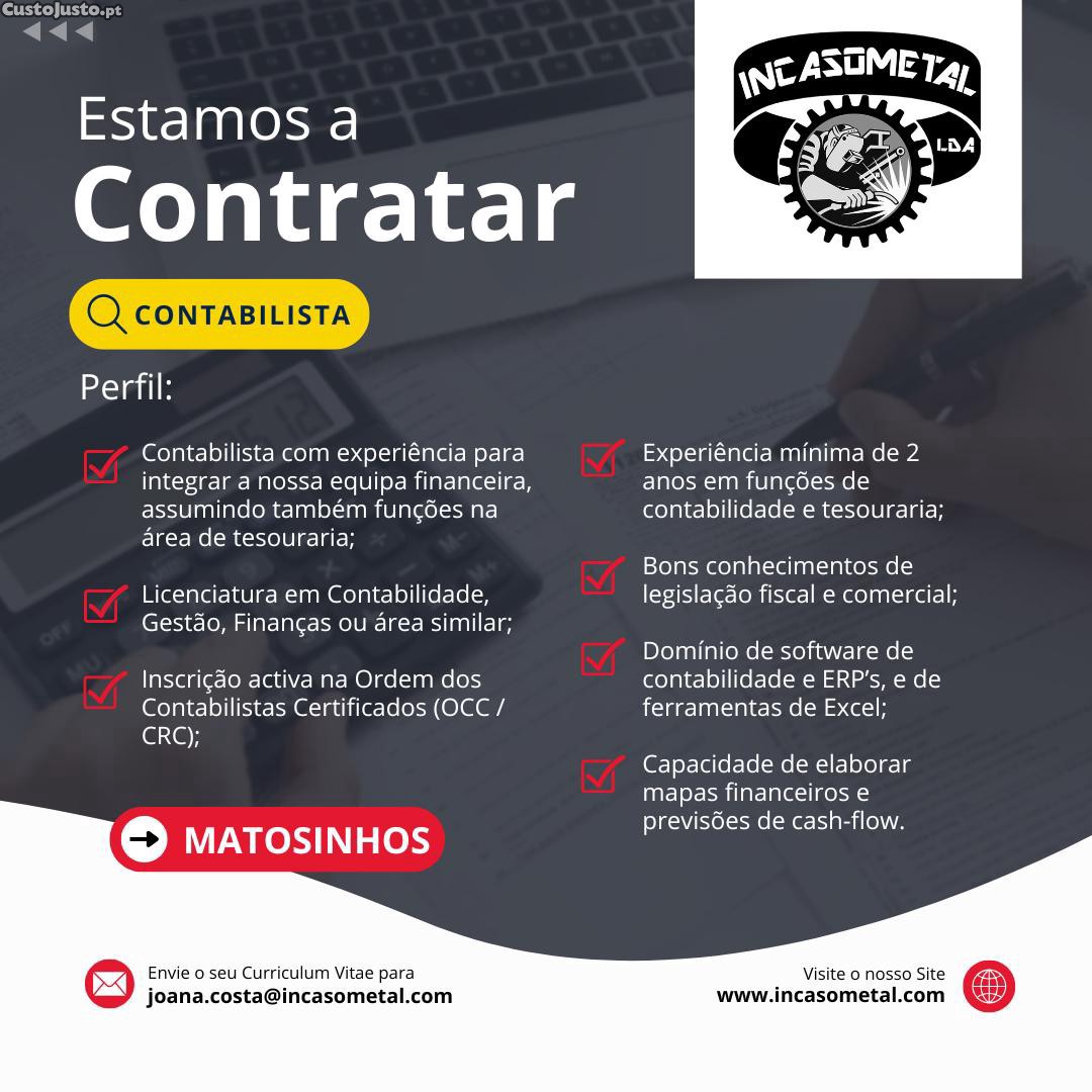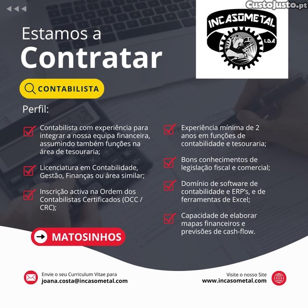 A empresa Incasometal Lda. Pretende recrutar CONTABILISTA para MATOSINHOS.