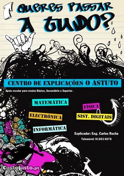 Dou explicações de Matemática, Álgebra, Estatística, Física, Electrónica, Sistemas Digitais, Microprocessadores, Circuitos e Teoria do Sinal (entre outras) a alunos do ensino Secundário e Superior. Sou licenciado (pré-Bolonha) em Engenharia Electrotécnica e de Computadores pela Faculdade de Engenharia da Universidade do Porto .