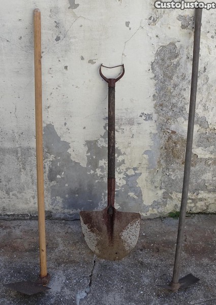 Preço: 20 €Enxada, Sacho e Pá de Cabos em Madeira (Com Mais de 50 Anos)