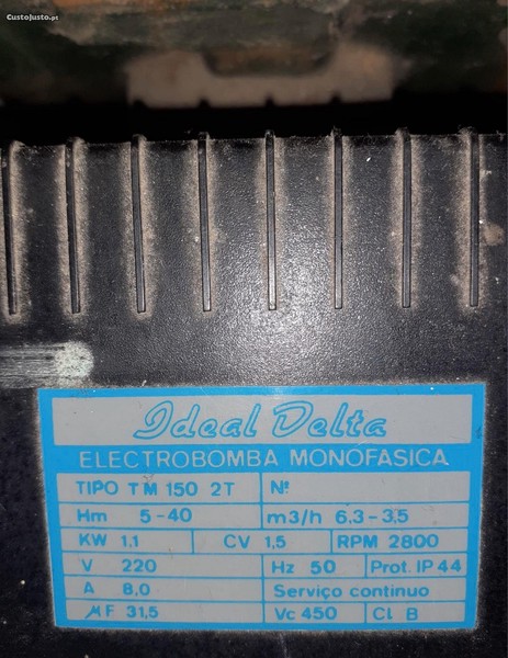 Preço: 245 €Motor/eletrobomba: Ideal Delta monofásico 1,5 cv