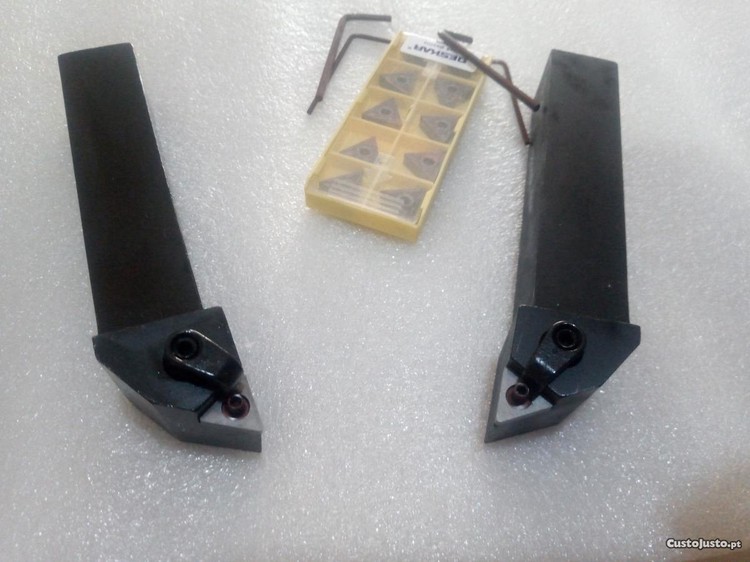 Suporte de pastilhas esquerdo com quadra de 25mm de espessura e suporte de pastilhas direito com quadra de espessura de 25mm de espessura com uma caixa de 10 pastilhas ref. TNMG160408. Boa qualidade.= 115E.