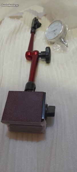 Base magnética articulada com relógio comparador. Base magnética com comprimento total de 350mm . Com boa magnetização com bloco magnético robusto.