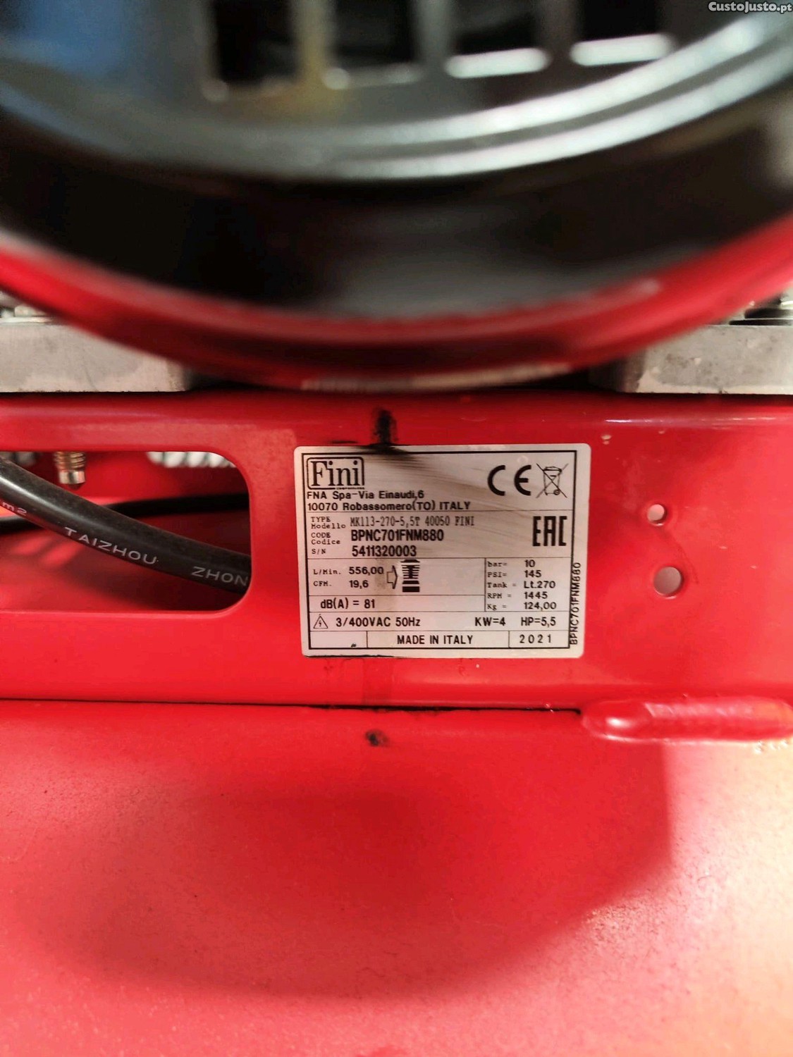 Compressor de ar FINI, depósito de 270 litros, motor 5,5HP trifásico 400V.