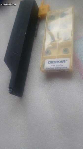 Suporte de pastilhas para torno ou CNC. Ferro para torno com quadra de 20mm de espessura com caixa de 10 pastilhas redondas de diâmetro de 10 mm.= 50E