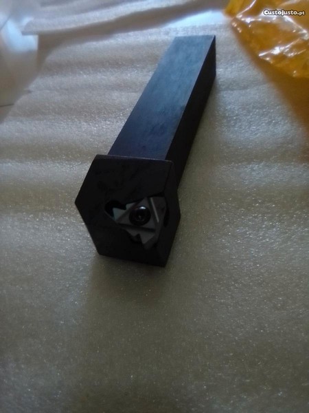 Suporte de pastilhas para torno ou CNC. Suporte de pastilhas para roscar. Suporte de pastilhas com quadra de 25mm de espessura com caixa de 10 pastilhas de roscar de passo de 3,5 a 6.