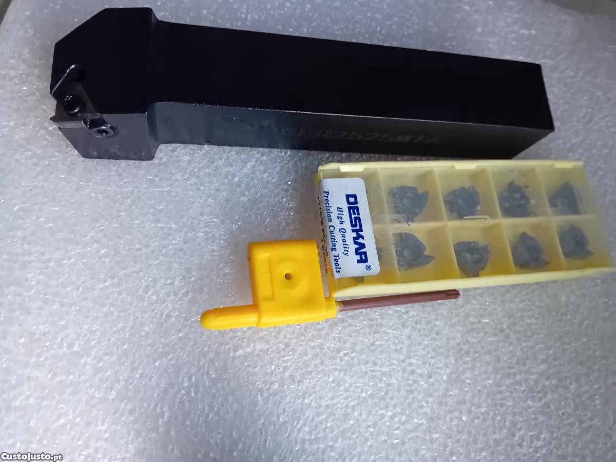 Suporte de pastilhas para torno. Suporte de pastilhas com quadra de 25mm com caixa de 10 pastilhas de roscar para passos de 0.5 a 3,