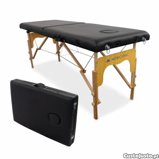Maca de madeira dobrável CM-01 Basic, ideal para transmitir calor e sensação de relaxamento ao cliente. Este modelo encontra-se revestido em pele de elevada resistencia, sendo verdadeiramente confortável para cada utilizador.
