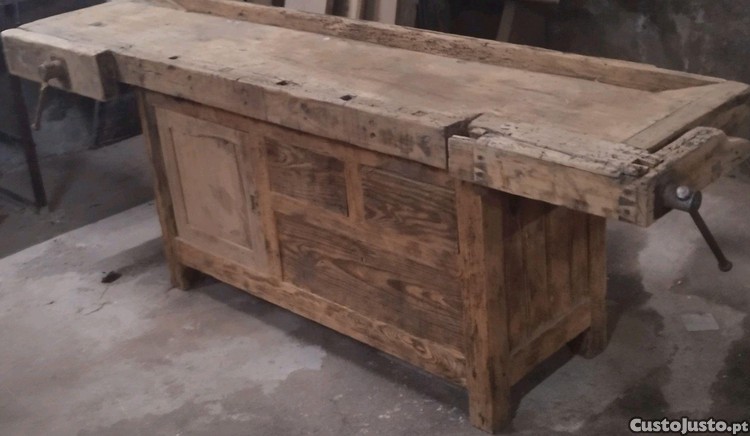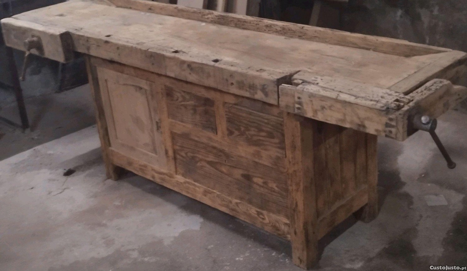 Banco marceneiro em madeira maciça de Riga com portas e gavetas banco centenário original