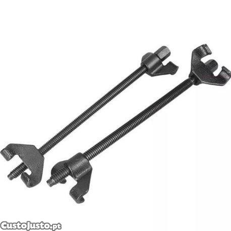Eles são adaptados para todos os tipos de molas em colunas e molas independentes. Eles têm um fio fino, o que facilita o trabalho sob a carga da mola. Trabalhar com o dispositivo é completamente seguro, graças às alças especialmente contornadas com dois braços de aço endurecido.