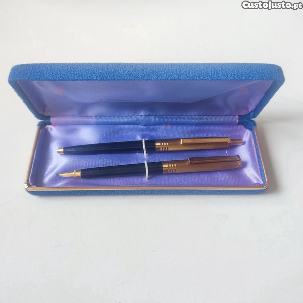 Preço: 15 €Estojo azul com Caneta e Lapiseira Vintage anos 70 Novo
