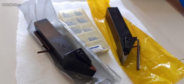 Dois suportes de pastilhas para torno ou CNC. Suporte de pastilhas esquerdo e suporte de pastilhas direito. Suporte de pastilhas com quadra de aperto de 20mm de espessura com caixa de 10 pastilhas ref. VNMG160408. Boa qualidade.