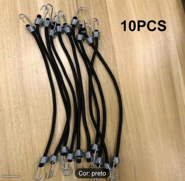 Esticadores elásticos úteis para diversas funcionalidades, medem 26,5 cms cada um, em tensão dá 55 cms. Cada pack de 10 custa 10 posso vender mais ou menos. Alguma duvida entre em contacto.