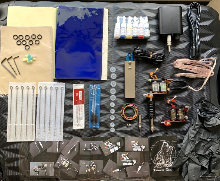Kit Tatugem Completo com tudo o que necessita para fazer tatuagens, todos os componentes deste Kit para fazer Tatuagens são de Qualidade Profissional, muito fáceis de utilizar e também está incluído Manual de Instruções.