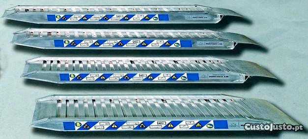 Comercializamos rampas em alumínio de 2.5m até 4.5m para carregar mini escavadoras rastos de borracha, mini carregadoras, rectro-escavadoras, ou giratórias de pneus até aproxi. 11ton.