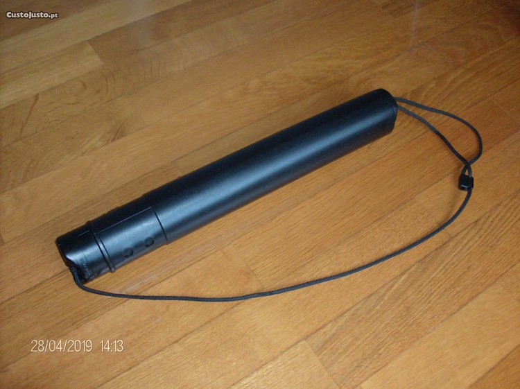 Tem comprimento 60 cm (fechado) e 115 cm (aberto) e diâmetro 8,5 cm.