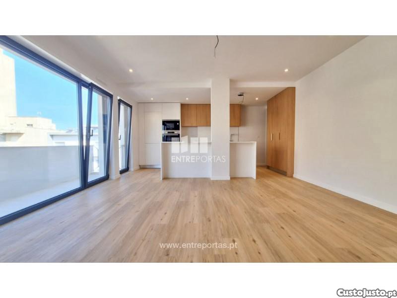 Venda de Apartamento T2 Duplex, novo, localizado em zona central, a poucos minutos da praia e do metro.