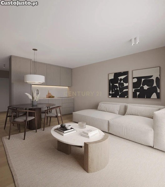Este apartamento T2 possui uma área bruta de 103 m² e uma área útil de 73 m².