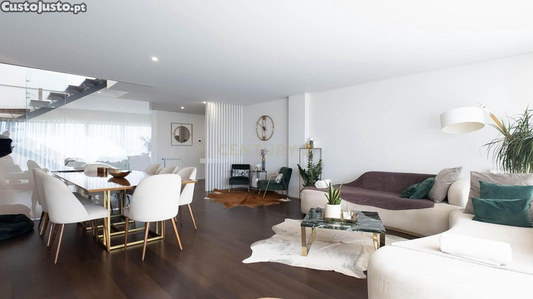 Apartamento triplex T3 + 3 com cerca de 300 m2 de área bruta que inclui duas varandas e cobertura e com pormenores de luxo como walk-in