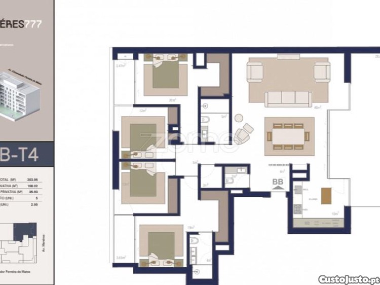 Apartamento T4 NOVO, sito no Empreendimento Menéres 777, na Avenida Menéres, em Matosinhos, com as seguintes características: