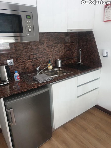 Com cozinha equipada, quarto, Wc e ar condicionado.