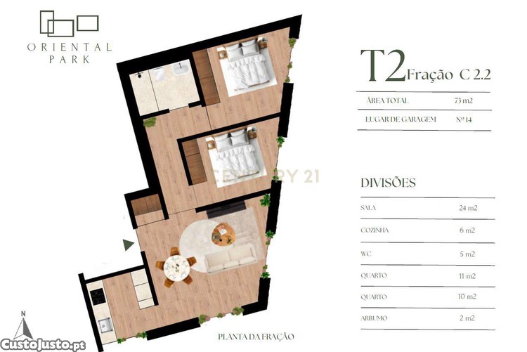 Preço: 265 000 €T2 Com Lugar De Garagem No Condomínio Residencial Oriental Park