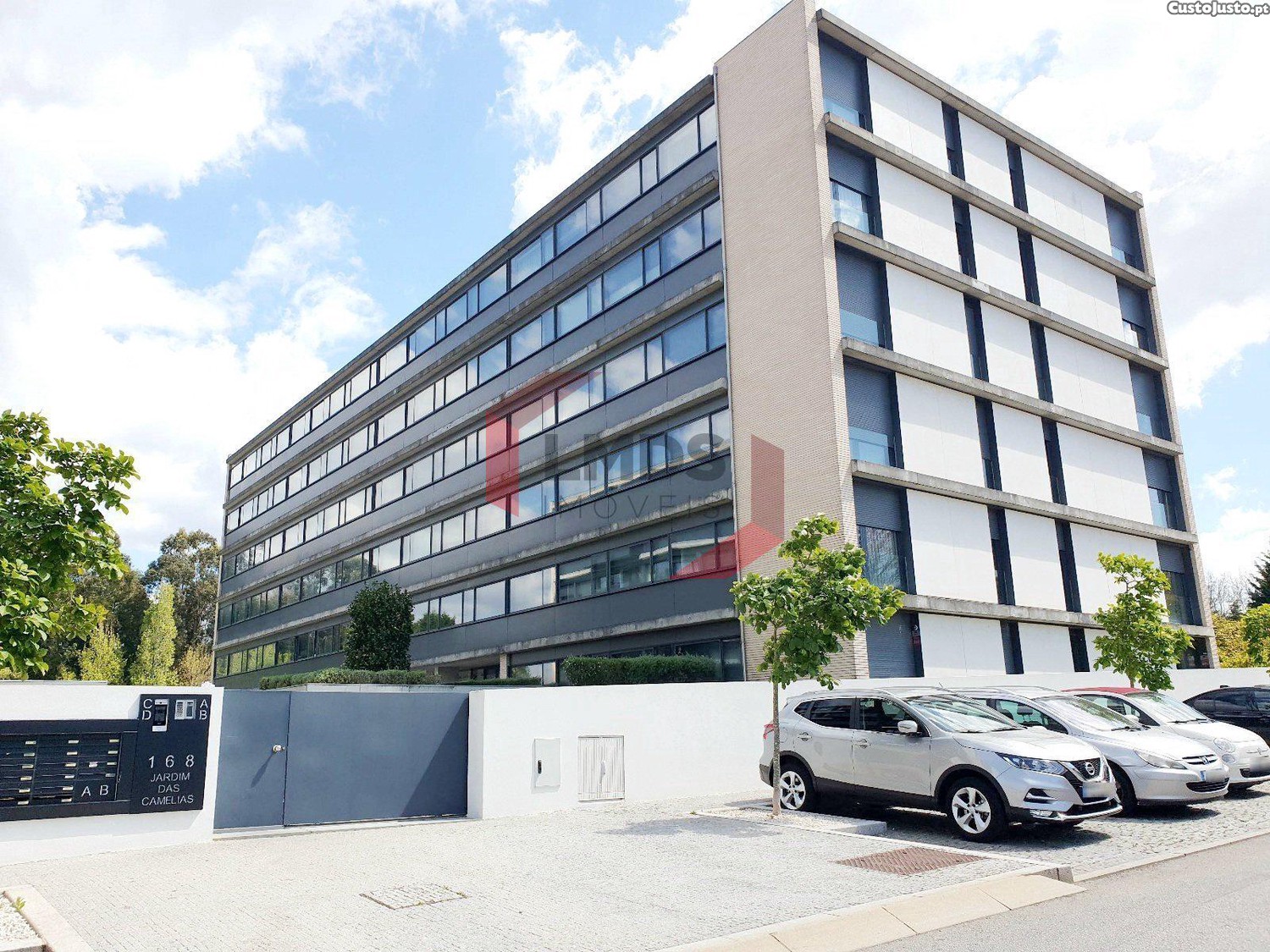 Apartamento moderno situado no 1º andar, em prédio com elevador, sendo composto por hall de entrada, sala comum, varanda, quatro quartos, instalações sanitárias, cozinha, arrumo e parqueamento na cave.