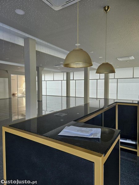 A Loja tem ( 1.200 mts ), um Pé direito de cerca de ( 3.5 mts ) portanto uma excelente área, pode ser personalizada às necessidades futuras, no entanto dispõe neste momento de vários gabinetes e salas, um de apoio de cozinha, ou de café, com uma banca, tem quarto de banho, tem Ar Condicionado.
