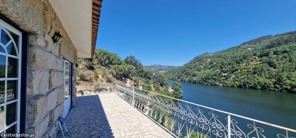 Uma fantástica casa em pedra, composta por 4 quartos, numa encosta em cima do rio, inserida em 2 hecatres de terreno, com vinha, fruta, adega, lagar e piscina.