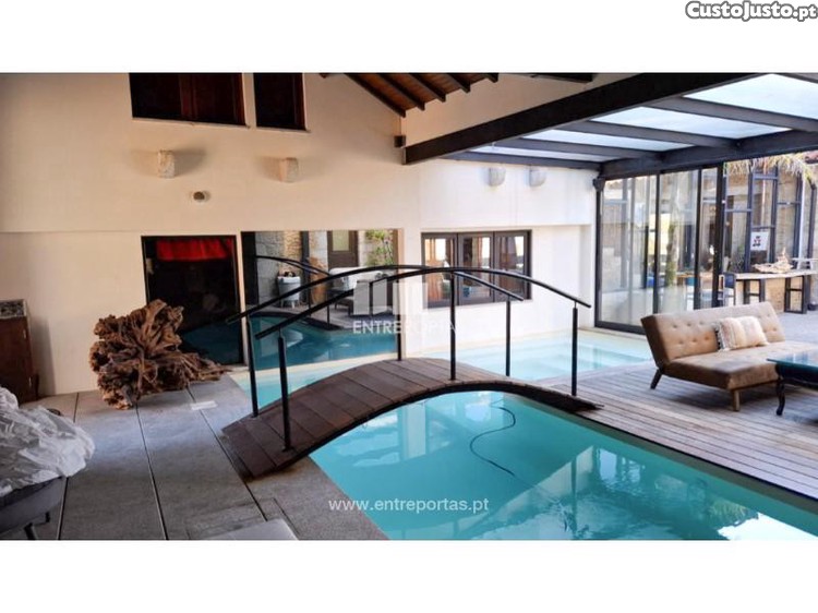 Inserida num terreno com 1475m2, composta por moradia com 4 quartos, 3 deles suite, cozinha equipada, sala com acesso ao terraço e sala de cinema.