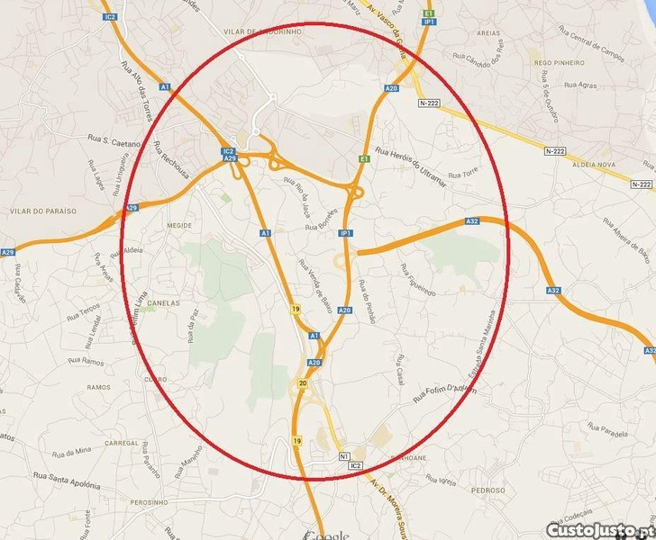 REF 573 - Terreno Quinta com 27.843m2 FACE á A1, junto ao nó das A29-A1-A32 na zona de S. Lourenço entre os nós de Vilar de Andorinho e dos Carvalhos. 4 poços, espigueiro, frentes de ruas em 50% do terreno. todo o terreno dá construção.