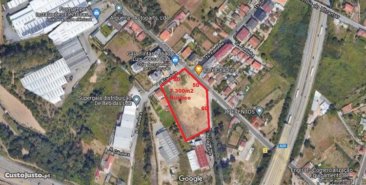 REF 1638 - Terreno com 7.300m2 de gaveto na Rua S. Lourenço em Vilar de Andorinho próximo do Monte da Virgem. Classificado em PDM para construção de moradias ou equipamentos. a poucos metros da saída da A1 e A28 e ainda da estação do Metro (em construção).