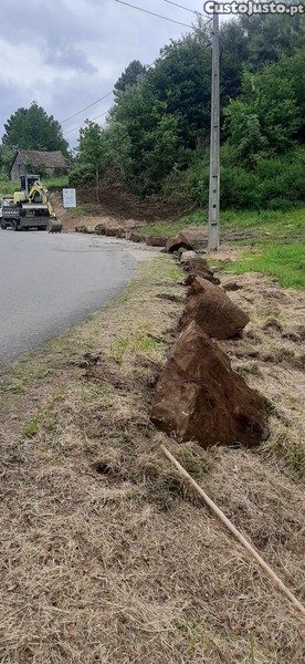 Toda a propriedade está delimitada por muro de pedras , ao cimo do terreno tem uma construção de pedras que era palheiro em ruínas.