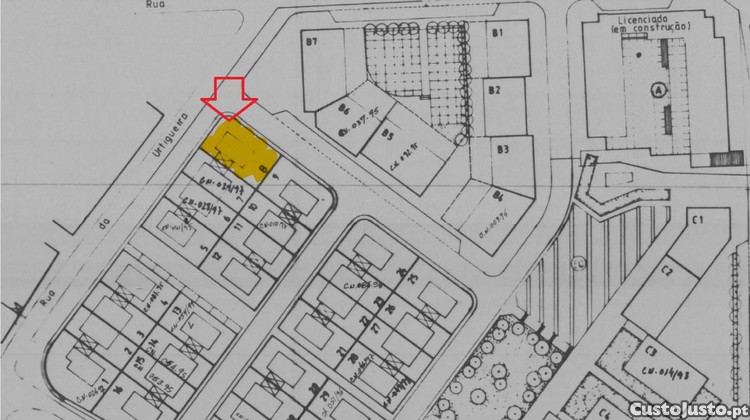 Tem 375m2, sendo possível construção de rés do chão e andar, sendo a cave facultativa.