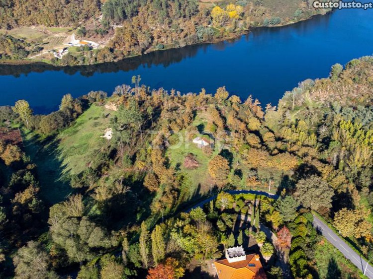 O terreno é plano junto às edificações existentes, com vistas desafogadas sobre o rio e encosta até à margem do rio.