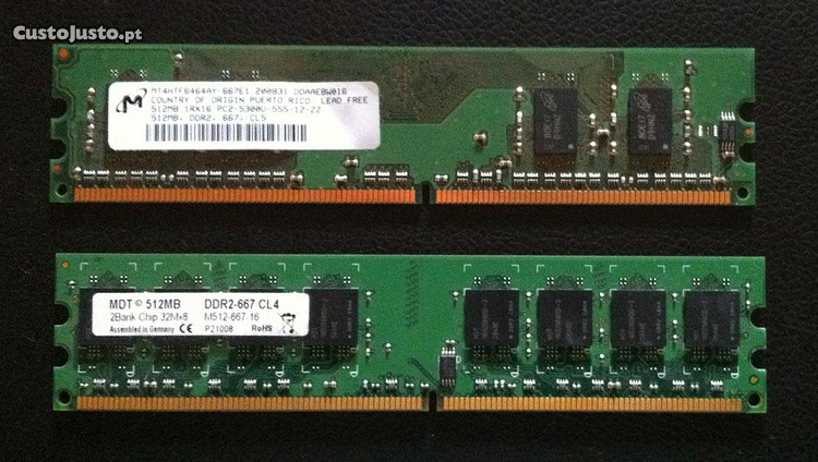 Preço: 5 €2 Memórias RAM DDR2 512 Mb