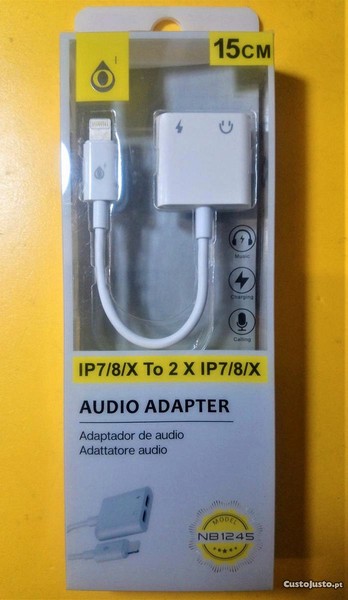 Preço: 5 €Cabo 2 em 1 carga e áudio Iphone IP7/8/X