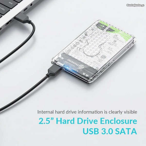 Preço: 18 €Caixa Externa 2.5"SATA III - USB 3.1 Gen2 Type-C Transparente (Sem Parafusos)