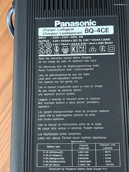 Carregador de pilhas de diversos tipos conforme imagem, marca Panasonic.