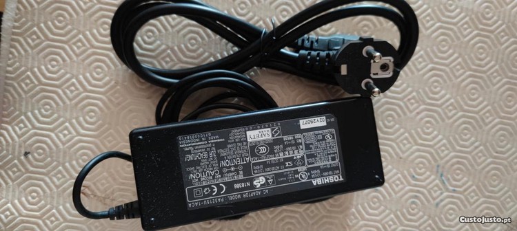 Carregador Toshiba 15V 19V 5A Em bom estado. Entrego em mão ou envio por correio para todo o país.