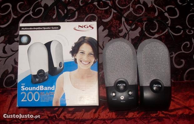 vendo conjunto de 2 colunas para computador,marca ngs,novas na caixa,controlo do volume na propria coluna,saida headphones de 3,5, potencia rms de 20wats