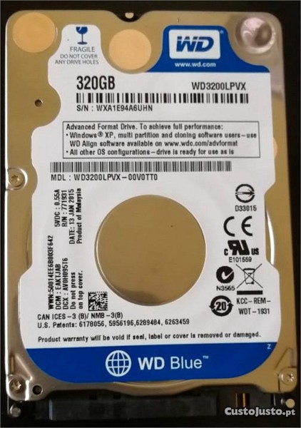 Preço: 10 €Disco Rígido WD Blue SATA 320Gb 2.5'