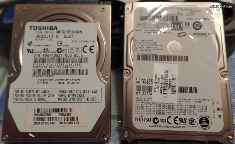 Vendo 2 Discos Sata da marca Toshiba e Fujitsu, a capacidade de cada um dos discos é de 320Gb.