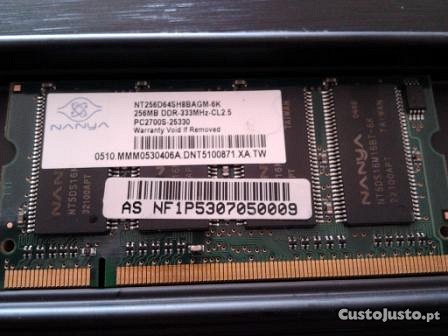 Preço: 2 €Memória de portátil 256MB DDR-333MHz