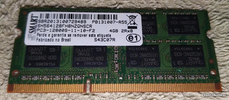 Preço: 15 €Memória RAM Smart 4GB 2Rx8 pc3-12800S-11-10-F2