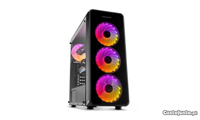 Computador novo. Uma torre com um CPU forte com 16 threads (jogos ou trabalho), um pente para melhor air flow (e temperaturas), ssd bastante rápido, motheboard da Asus, e fonte com 700w que da para uma rtx 3070 à vontade ou até uma Rtx 3080. Caixa com fans com leds e latetal em vidro temperado transparente (de tom escuro).